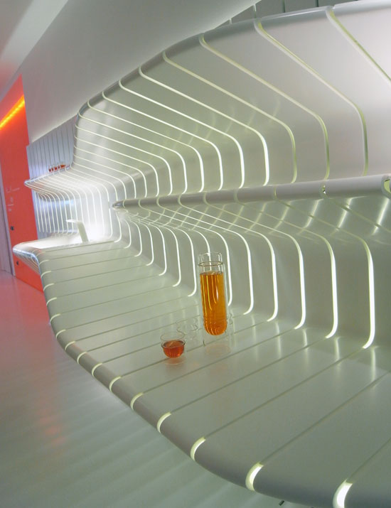 the 'CORIAN® super-surfaces' project is a conceptual interpretation of the lounge as